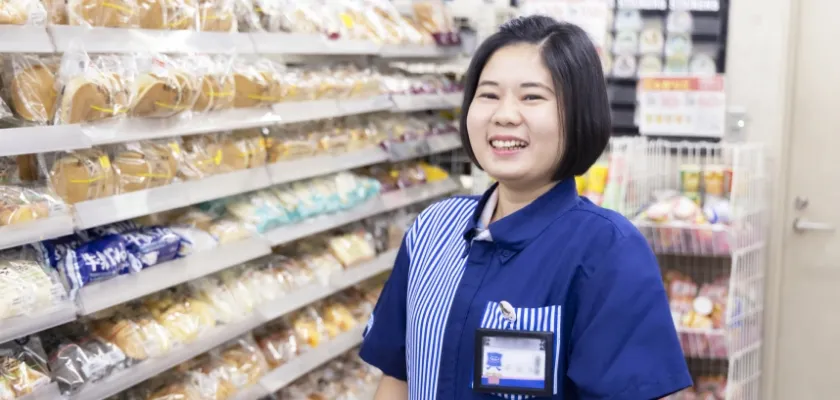 日本語を勉強して日本の会社に就職したいと思い、2019年にミャンマーから来日しました。最初は日本語学校に通いながらレストランでホールの仕事をしていたのですが、日本語の勉強のためにもっとお客さまとの会話が多い職場で働きたいと考えるようになりました。そこで思いついたのが、コンビニでの仕事です。